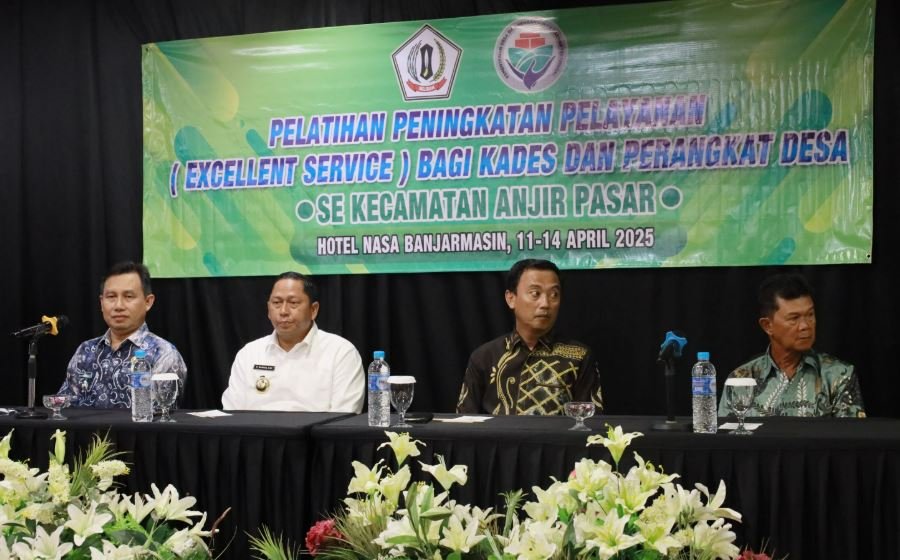 NusaHeadline.com, Barito Kuala – Pemerintah Kabupaten Barito Kuala menunjukkan komitmen dalam meningkatkan kualitas pelayanan publik di tingkat desa melalui pelatihan “Excellent Service” bagi kepala desa dan perangkat desa se-Kecamatan Anjir Pasar. Pelatihan ini dibuka langsung oleh Bupati Barito Kuala, H. Bahrul Ilmi, pada Jumat (11/4/2025) di Hotel Nasa, Banjarmasin.