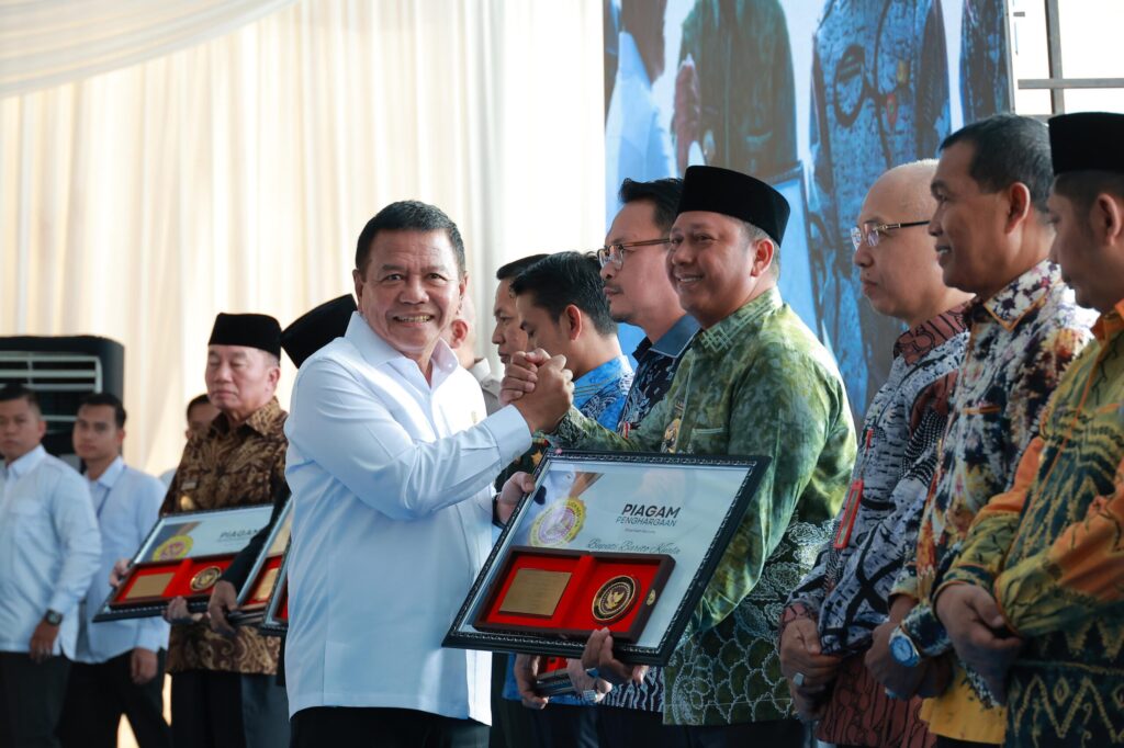 Sebagai bentuk apresiasi atas dukungan dalam pembangunan gedung tersebut, Muhammad Herindra menyerahkan piagam penghargaan kepada para tokoh yang berkontribusi, termasuk kepada Bupati Barito Kuala H. Bahrul Ilmi.