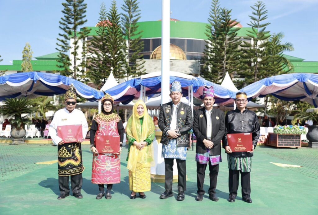 Upacara Hardiknas berlangsung meriah dan penuh makna, diikuti jajaran Pemkab Tanah Bumbu serta para guru yang mengenakan pakaian adat dari berbagai daerah Indonesia, mencerminkan keberagaman dan semangat persatuan dalam pendidikan.